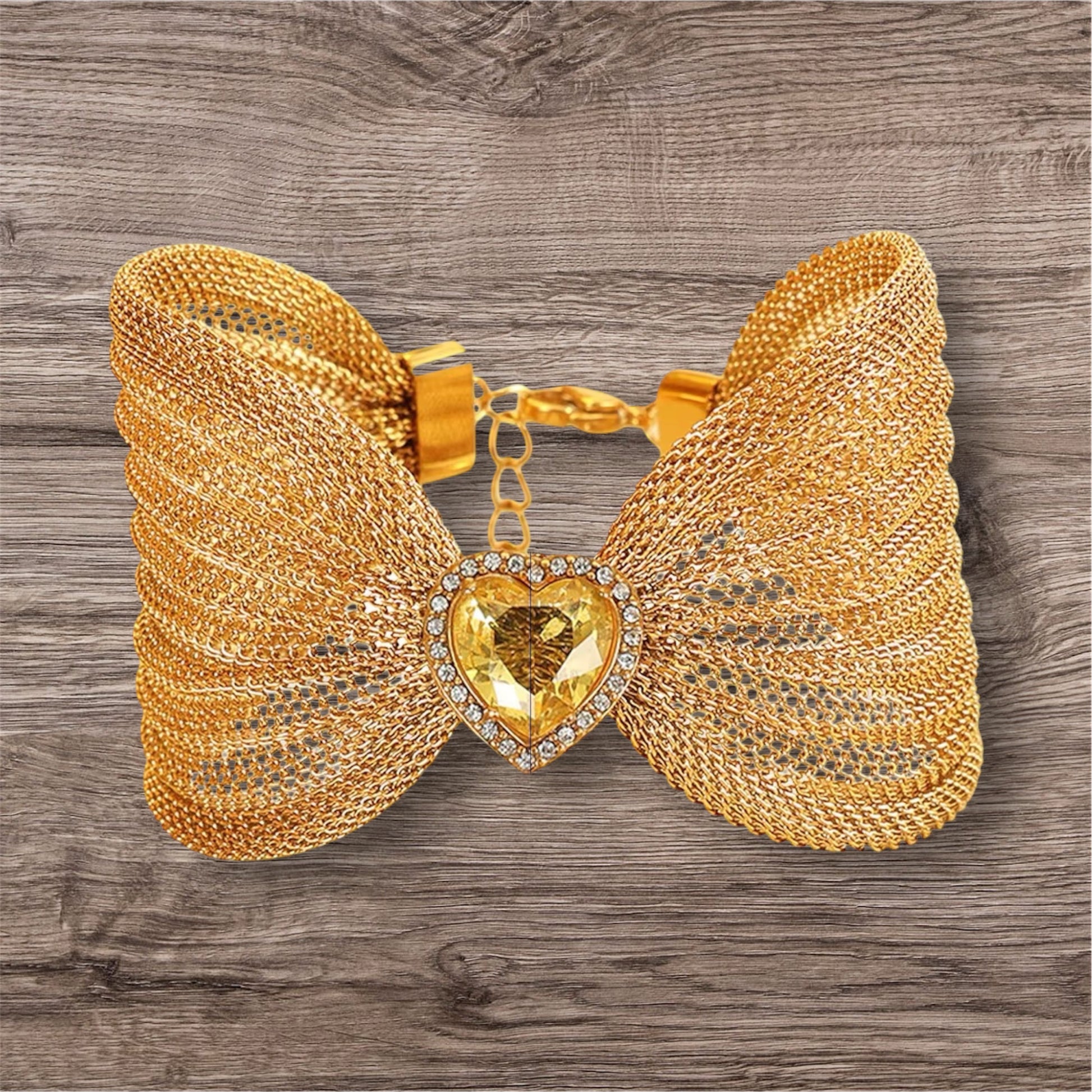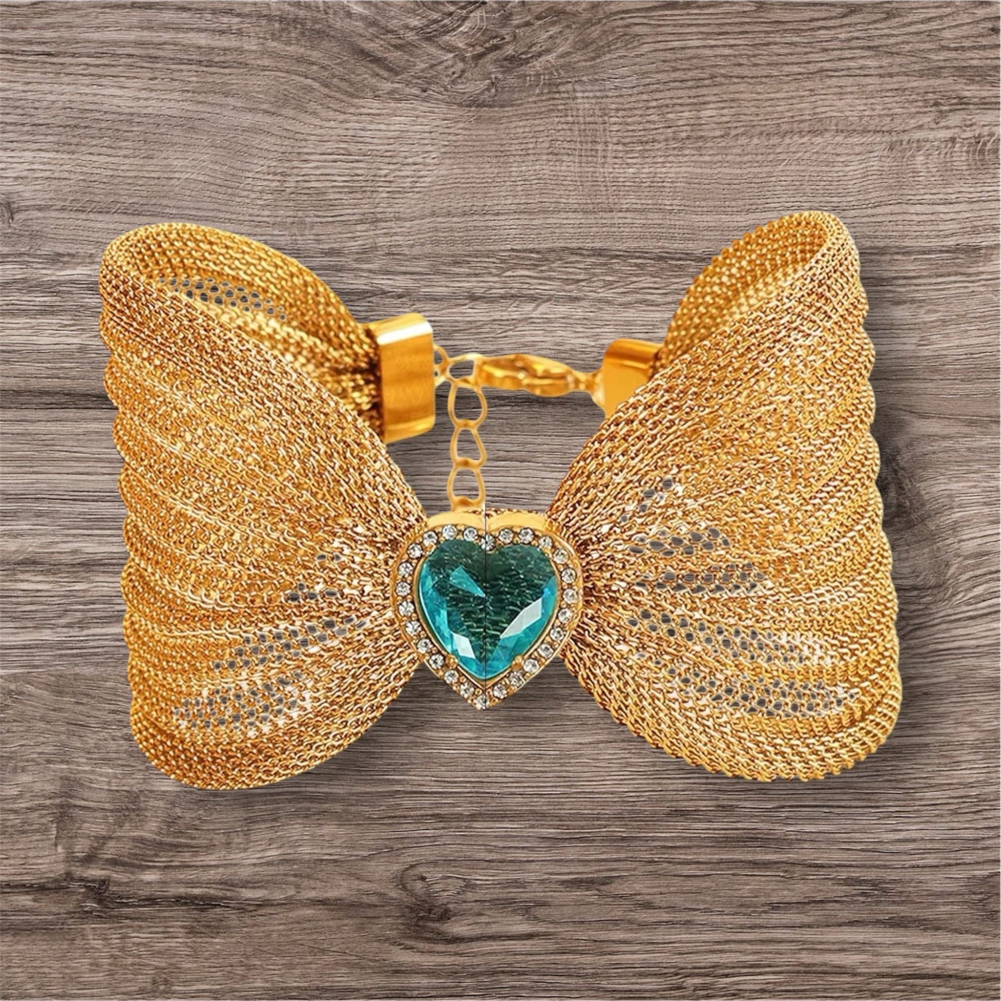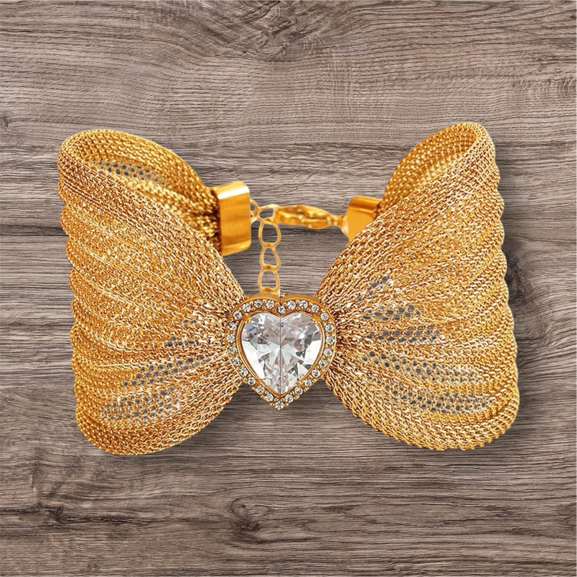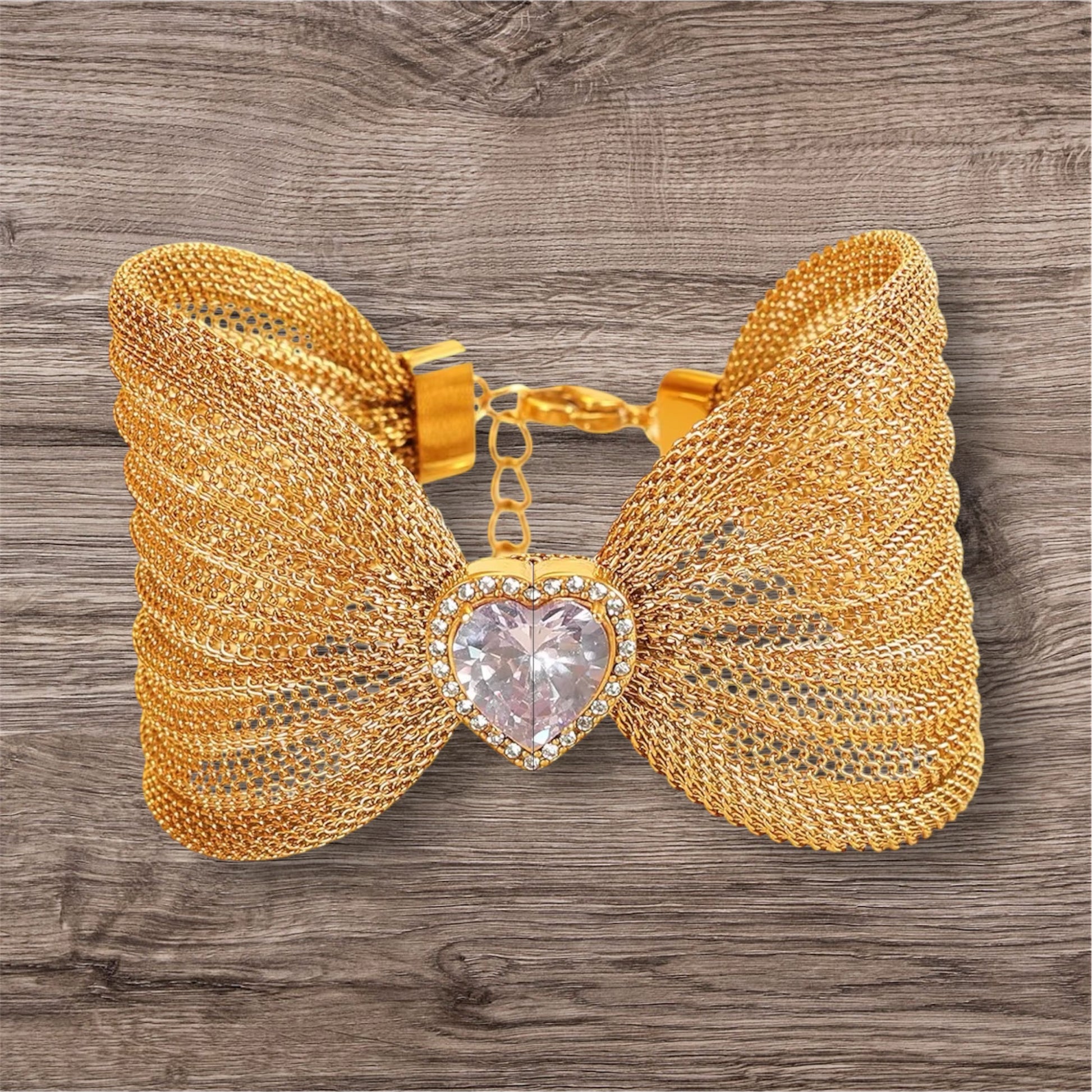 Pulsera brazalete de acero inoxidable chapado en oro de 14k. Piedra en forma de corazón con zirconias.