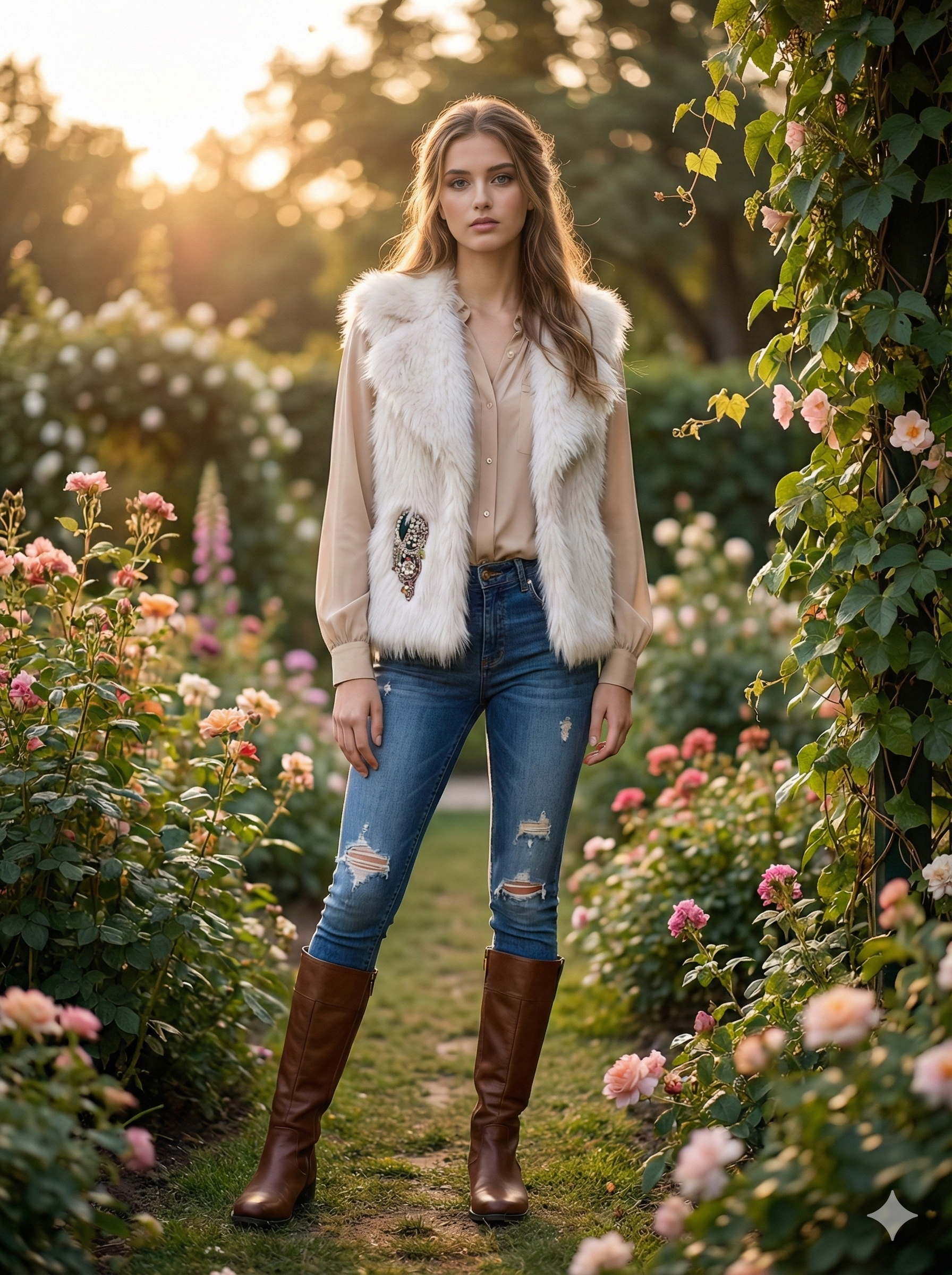 • Look de día casual: Combínalo con unos vaqueros desgastados ajustados, una blusa beige o jersey de punto fino y botines camperos (como en nuestra foto de referencia) para un estilo festival vibe perfecto.