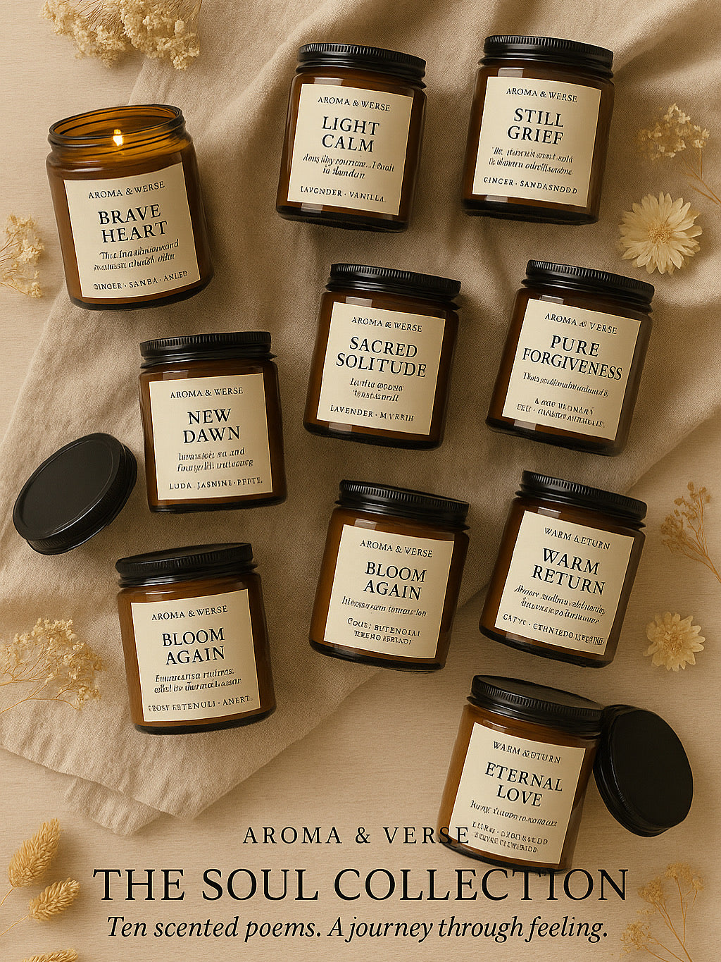 Por qué te encantará: Cada vela de Aroma & Verse está acompañada de una obra literaria original, capturando la esencia del aroma y transformando cada luz en un ritual personal.