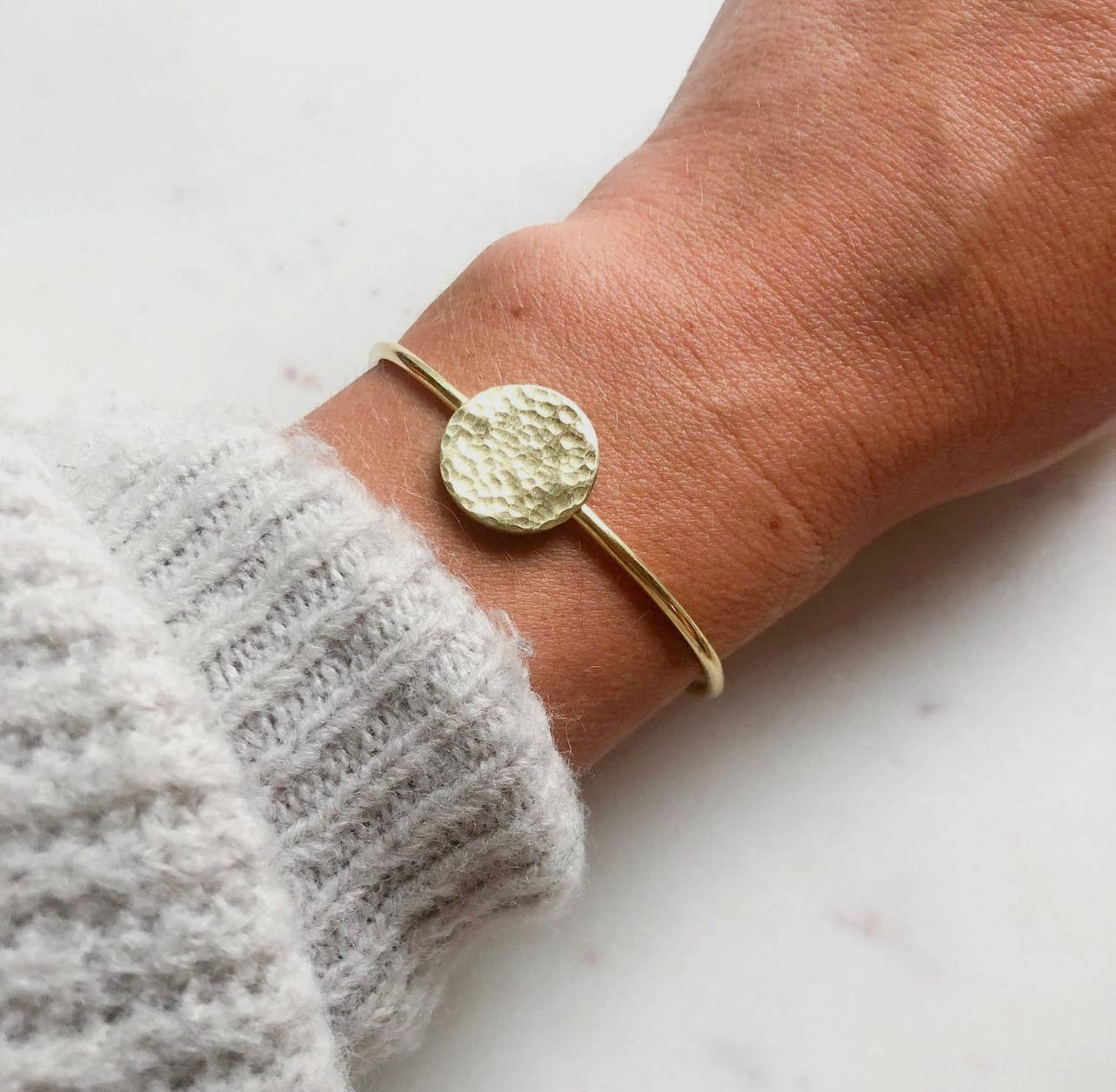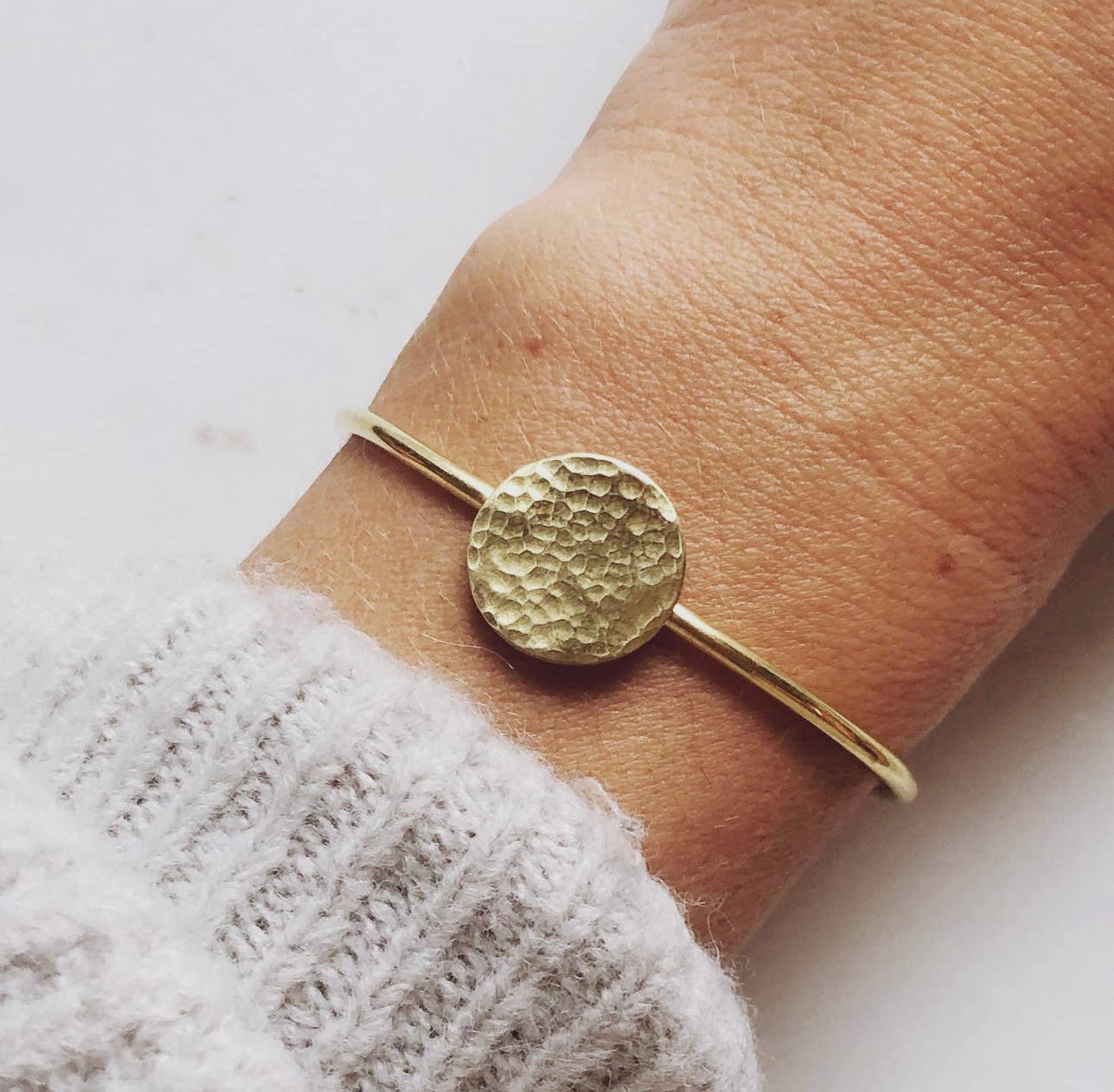 Brazalete hecho a mano con moneda martillada soldada.
